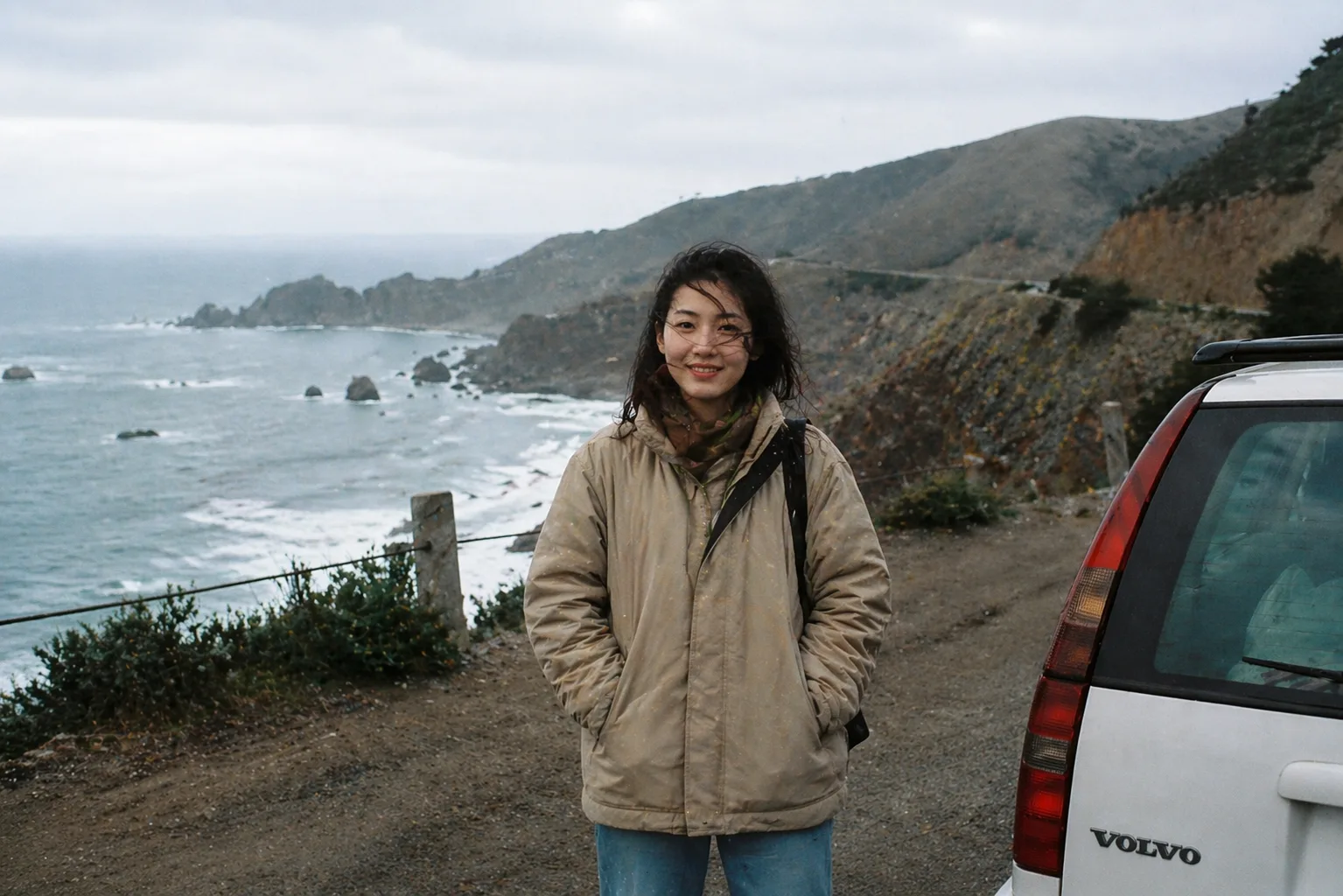 生成逼真的照片,具有电影级构图、自然肤质和环境叙事感 — 一张看起来像胶片相机拍出的海岸公路旅行场景。GPT Image 2 级别的照片真实感,在 nana img 上免费使用。